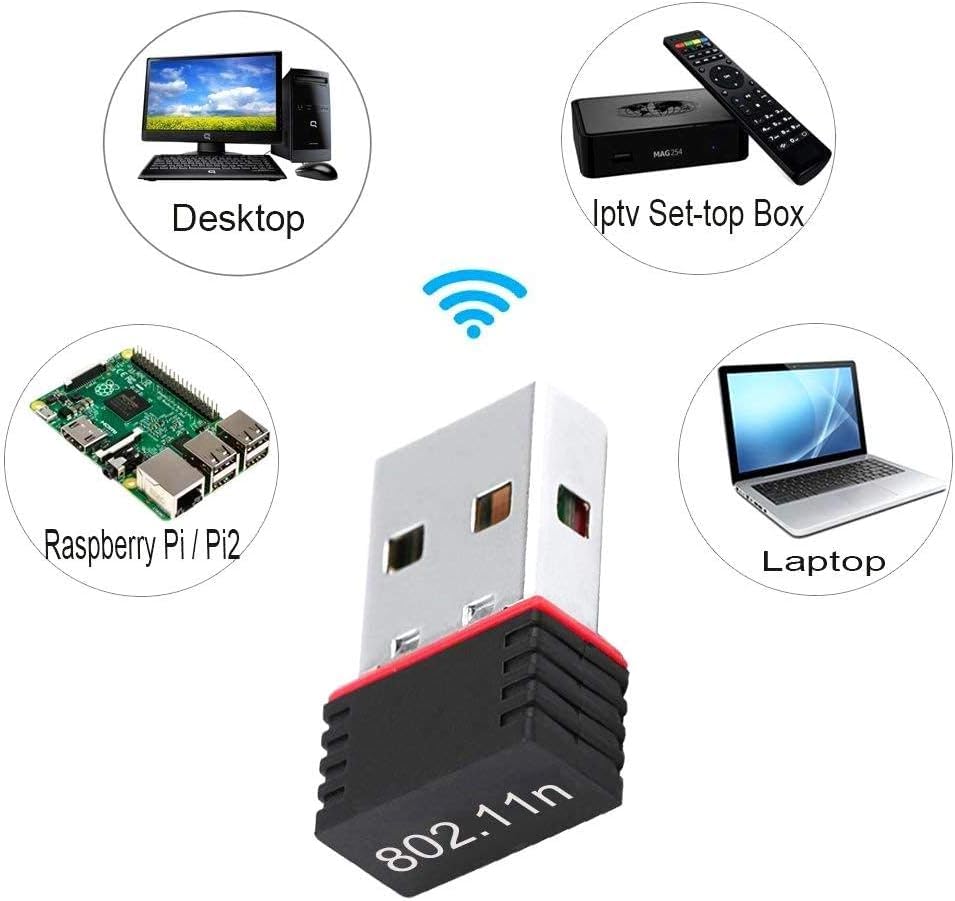 Generic - محول واي فاي USB 150 ميجابت/ثانية، محول بطاقة شبكة لاسلكية، واي فاي دونجل للكمبيوتر، والكمبيوتر المحمول بنظام تشغيل ويندوز 10، 8،7، راسبيراي بي اي/ بي اي 2