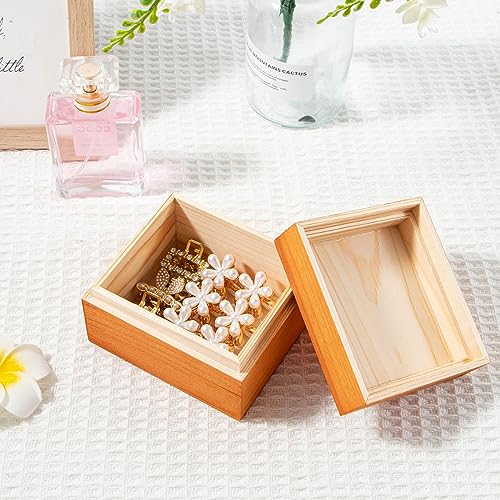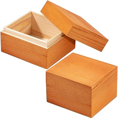 Useekoo - علبة خشبية صغيرة مع غطاء بتصميم عتيق، صندوق تذكاري صغير بتصميم ريفي للحرف اليدوية والهوايات الفنية والديكورات المنزلية من يوسيكو، مقاس 9.5 سم × 8.5 سم × 6 سم، قطعتين