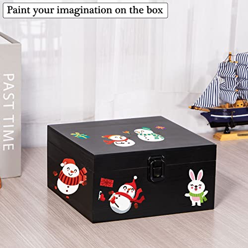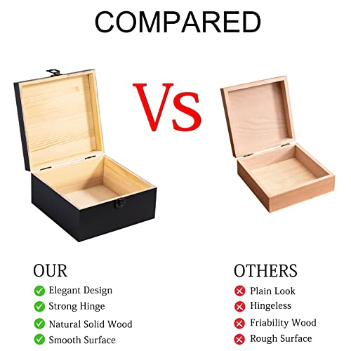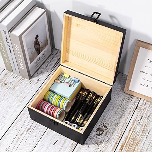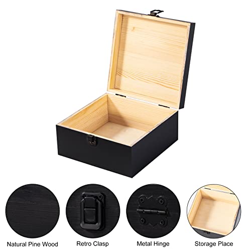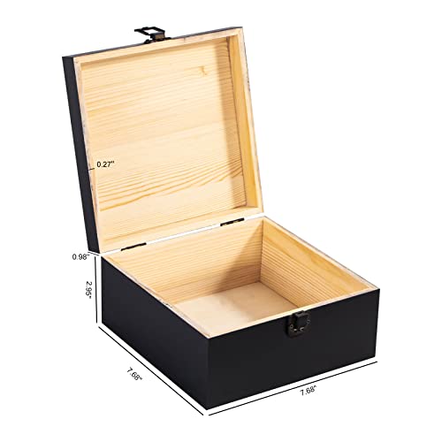 Useekoo - يوسيكو صندوق تخزين خشبي عتيق مع مشبك امامي بغطاء مفصلي تذكاري كبير 7.7 انش × 7.7 3.9 صناديق خشبية ريفية للحرف اليدوية والهوايات الفنية والديكور المنزلي اسود غير لامع صنوبر