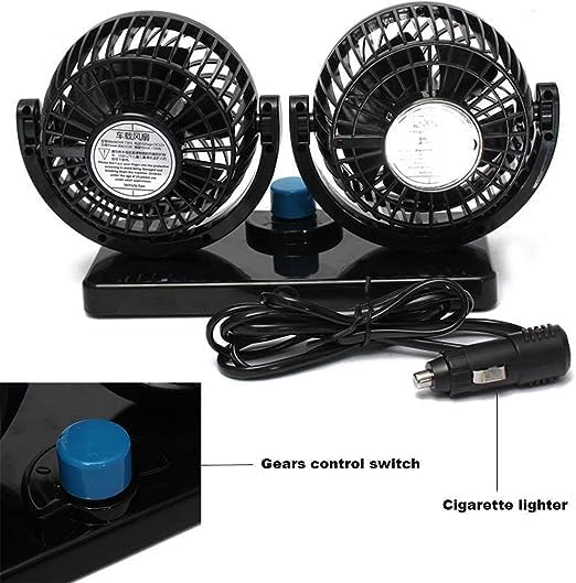 USHOP - مروحة تبريد دوارة في جميع الاتجاهات ومحمولة للسيارة من يو شوب - بسرعتان للرياح تعملان بواسطة ولاعة السيارة، 2 قطعة