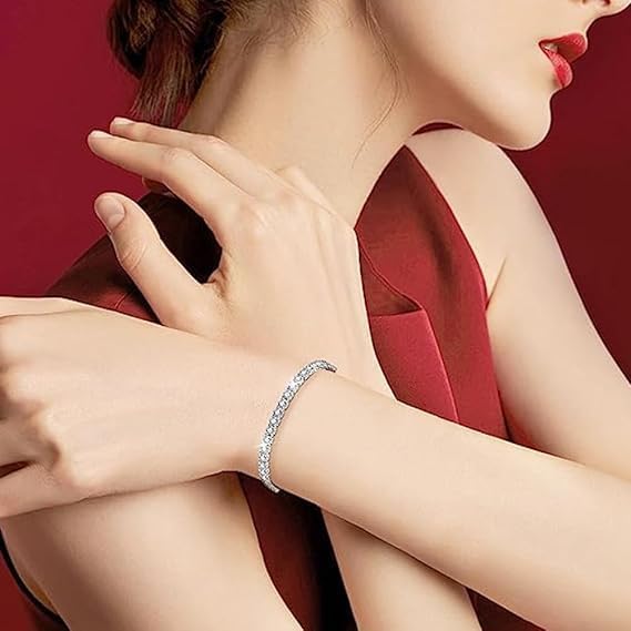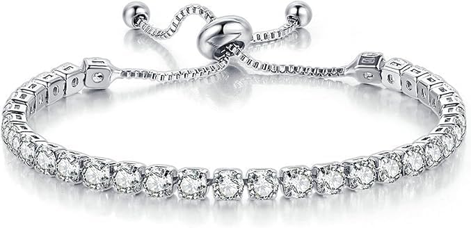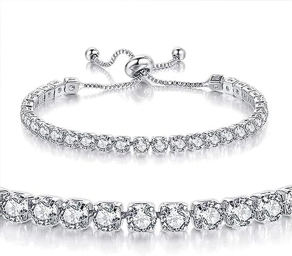 USHOP - سوار تنس قابل للتعديل للنساء والبنات المراهقات من يو شوب ✔، سوار عصري مرصع بالزركونيا المكعب مطلي بالذهب الأبيض والأصفر عيار 18 قيراط، سوار منزلق مضاد للحساسية