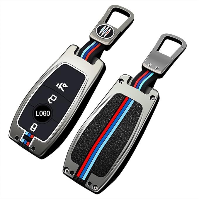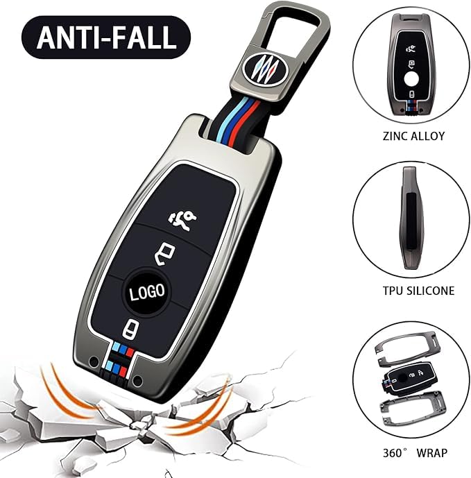 USHOP - جراب حماية بزرار لمفتاح السيارة من يو شوب ✔ ، مصنوع من خليط الزنك المعدني وبولي يوريثين مقاوم للحرارة لسيارة فئة A B C E S R G M GL SL GLA GLC GLE SLK CLK CLS SLC SLR CL ML AMG