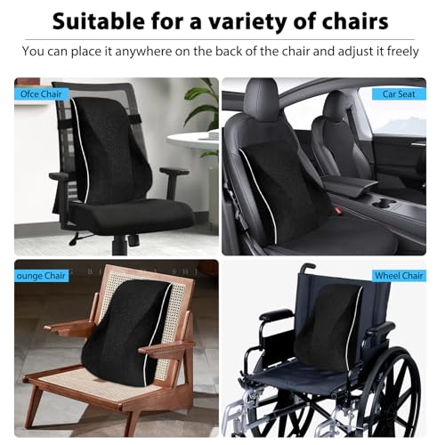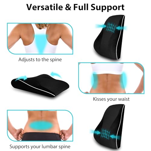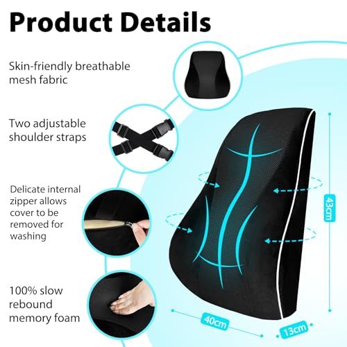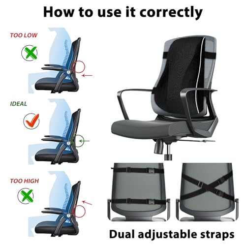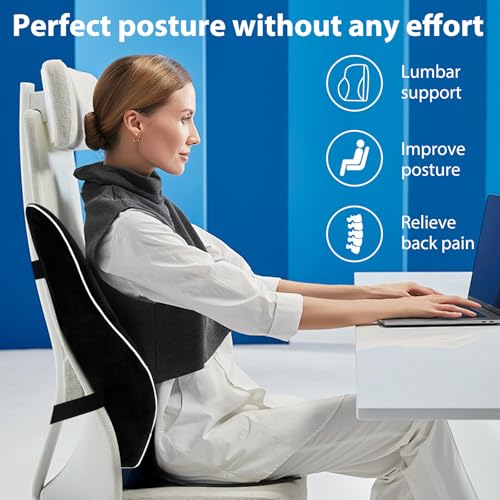 USHOP - مخدة دعم لأسفل الظهر من يو شوب، دعم ظهر مريح لكرسي المكتب مع تنظيم حراري مزدوج، مخدة دعم الظهر من الميموري فوم عالي الكثافة، مع أحزمة مزدوجة قابلة للتعديل وغطاء قابل للفصل