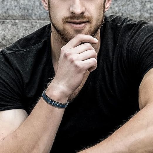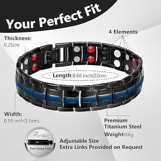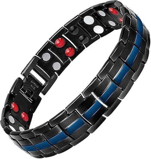 USHOP - سوار مغناطيسي من يو شوب ✔ للرجال من الستانلس ستيل مع صف مزدوج مكون 4 عناصر مغناطيسية مغناطيس فائق القوة وتوازن الطاقة