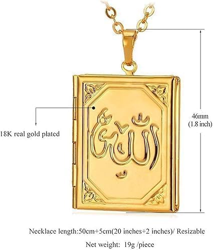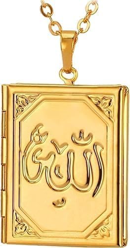 USHOP - سلسلة بدلاية من يو شوب على شكل مصحف وكلمة الله للنساء، مطلية بالذهب عيار 18 قيراط
