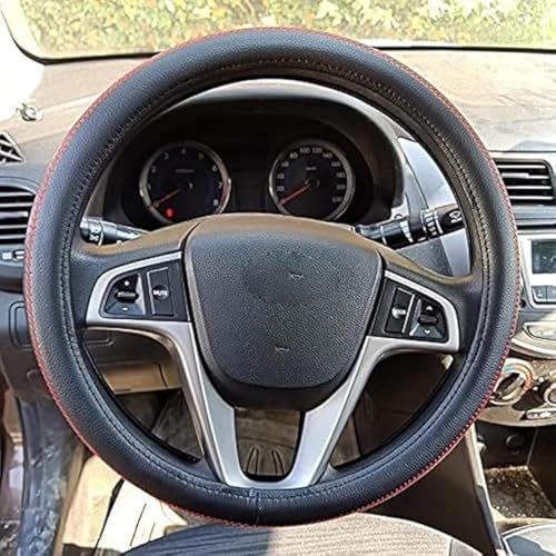 USHOP - غطاء طارة دركسيون السيارة - غطاء عجلة قيادة من الجلد الأسود مع خياطة من يو شوب