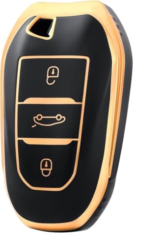 USHOP - غطاء حماية، من يو شوب ، لمفتاح السيارة عن بعد من البولي يوريثين المقاوم للحرارة متوافق مع بيجو 208 308 408 508 307 2008 3008 5008 سيتروين C3 C4 C5 DS3 DS5 DS7، فضي وأسود (اسود ذهبي)