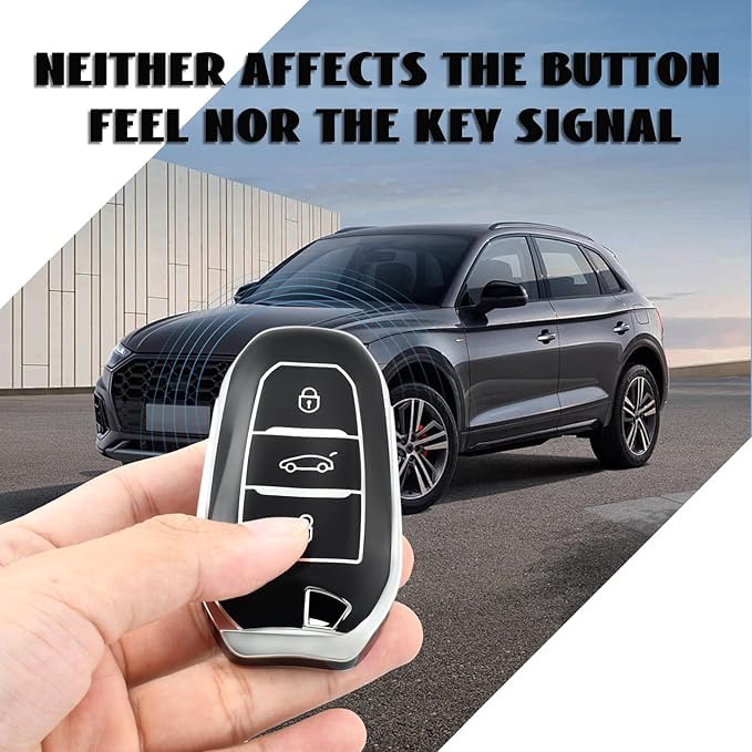 - ٣) تصميم عصري: غطاء بلونين أسود وفضي يضيف لمسة أنيقة مع الحفاظ على وظائف المفتاح الأصلية