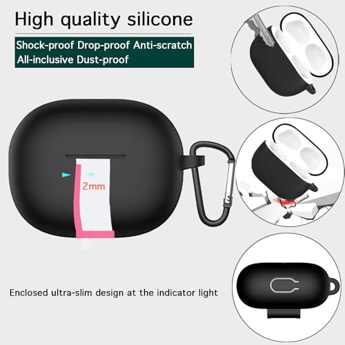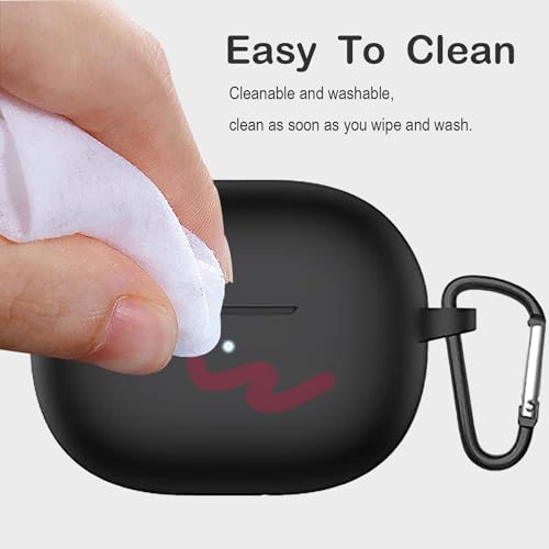 USTIYA - جراب حماية سيليكون لسماعات ريدمي بادز 3 لايت مناسب للتعليق بسلسلة المفاتيح من يوستيا، اسود