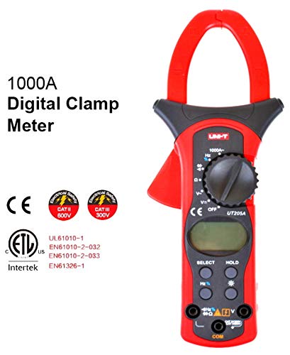 UNI-T - مقياس جهد كهربائي متعدد الاستخدامات UT205A بنطاق تلقائي 1000 امبير مع إضاءة خلفية LCD وشاشة LCD من يوني - تي