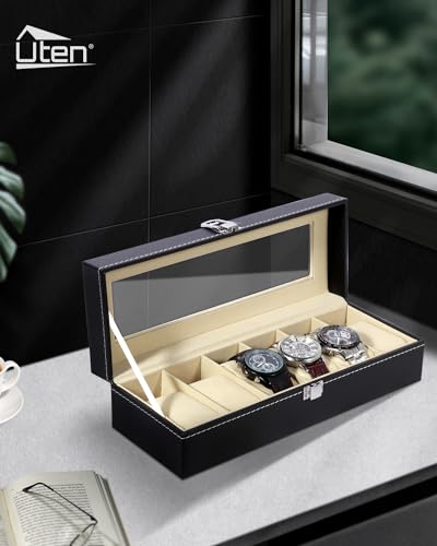 Uten - ساعة صندوق مع حامل وسادة قابل للإزالة غطاء زجاجي 6 شبكات من يوتين