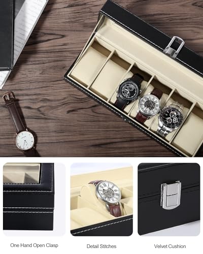 - العرض والتخزين: صندوق مجوهرات الساعات هو عنصر رائع يسمح للرجل أو السيدة بعرض مجموعته الكاملة من الكرونومتر، ويحمي ويخزن وينظم 6 ساعات، يناسب احتياجاتك تمامًا.