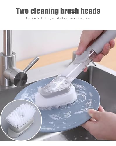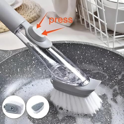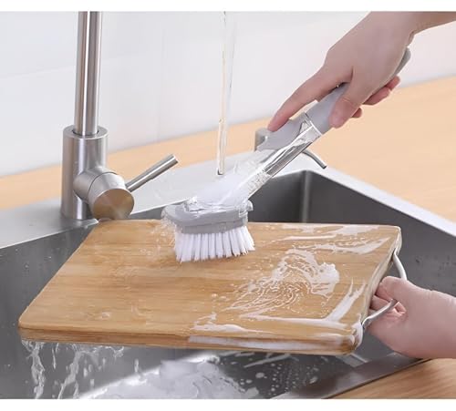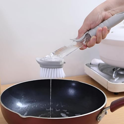 Generic - فرشاة تنظيف مع موزع سائل مدمج للأواني بمقبض مقاوم للانزلاق بشعيرات دقيقة تصل إلى كل الزوايا لتنظيف المعالق والسكاكين والشوك وأدوات تناول الطعام وأدوات المطبخ الصغيرة - قطعة واحدة