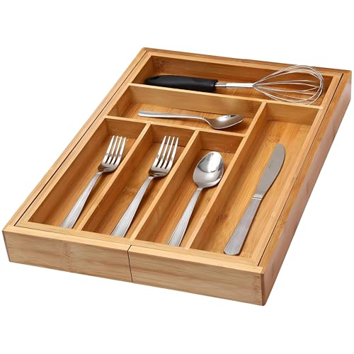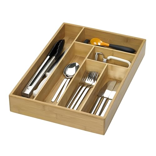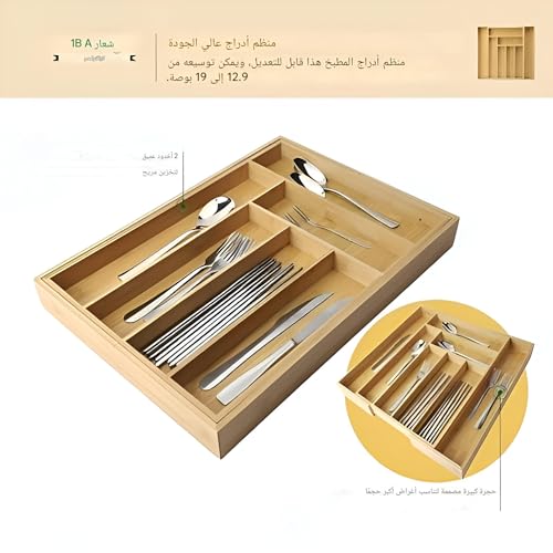 Generic - درج ادوات المائدة - حل تخزين من الخيزران الصديق للبيئة مع سبع مساحات تخزين لأدوات المائدة وأدوات المطبخ، سهل التنظيف والاستخدام