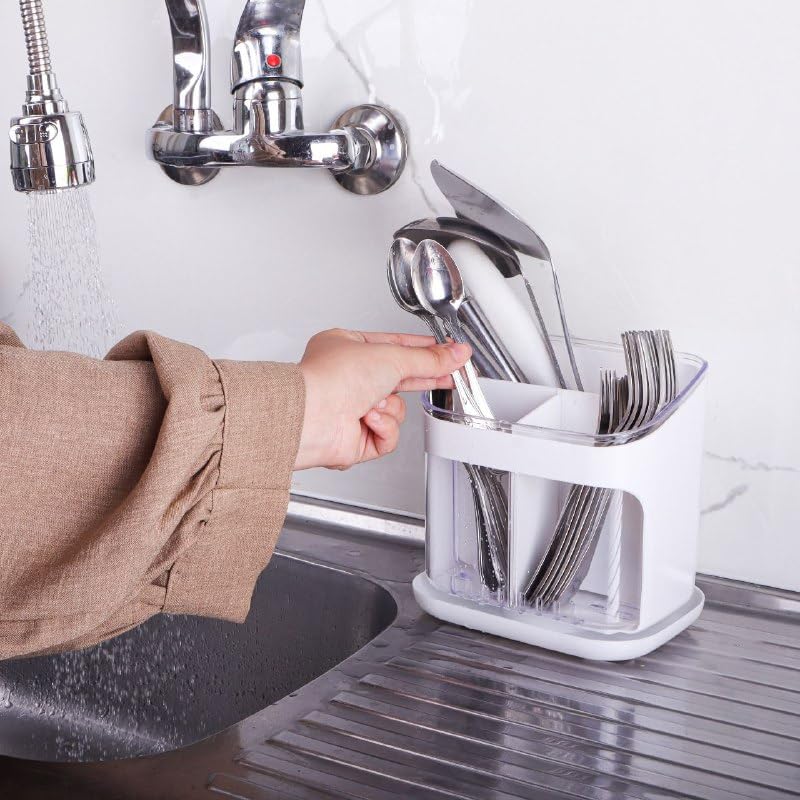 - تم تصميم قاعدة المنظم بحيي عند استخدامه كحامل للأدوات، تساعد قاعدة التصريف المدمجة على فصل الماء عن الملاعق والشوك والسكاكين المغسولة حديثًا. هذا يحافظ على أدوات المطبخ جافة ويساعد على الحفاظ على نظافة أفضل على سطح الطاولة. يمكن أيضًا إزالة القاعدة بسهولة عند استخدام المنظم لمستحضرات التجميل أو اللوازم المكتبية. تساعد على تصفية الماء من المعالق والسكاكين بعد غسلها، مما يساعد على الحفاظ على الأدوات جافة ونظيفة. كما يمكن إزالة هذه القاعدة بسهولة عند استخدام المنظم لأغراض أخرى.