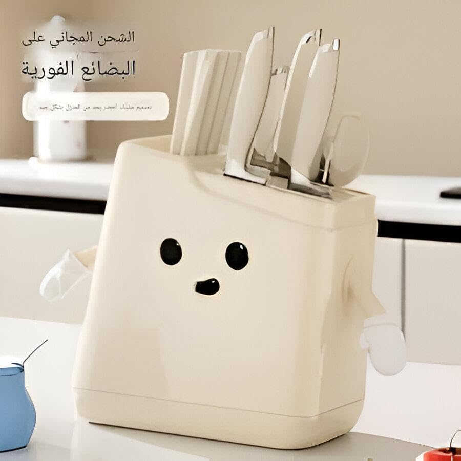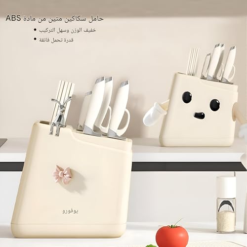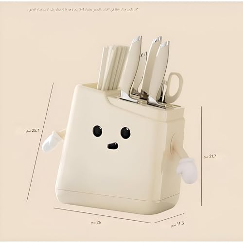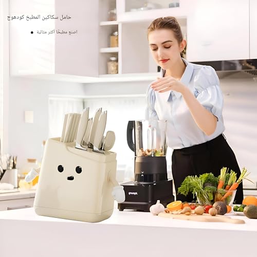 - حامل سكاكين عالمي ومنظم أدوات مع ثماني فتحات مصممة لثبات سطح الطاولة؛ يناسب جميع أحجام وأنواع السكاكين مع توفير فتحات إضافية للشوك والملاعق، مما يوفر مساحة تخزين واسعة، بالإضافة إلى صينية تنقيط مدمجة لالتقاط الماء والحفاظ على نظافة المنضدة.