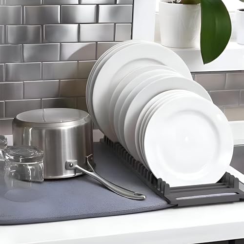 Generic - منظم أواني - حصيرة تجفيف طبق فريدة من نوعها يضم حامل المرفقة للملاعق والشوك ، مثالية للحفاظ على النظافة والنظام في مطبخك (رمادي, قطعه واحده)