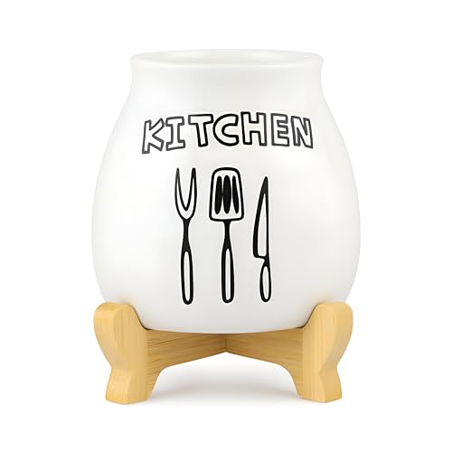- مصفاة أواني بورسلين أنيقة مع حامل من الخيزران الطبيعي يحافظ على الملاعق والشوك والسكاكين منظمة بأناقة مع إضافة لمسة أنيقة وموفرة للمساحة إلى مطبخك.