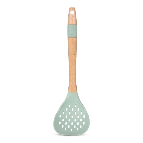 - تصميم مريح: توفر المقابض الخشبية مع أقسام قبضة السيليكون المزخرفة معالجة مريحة وآمنة أثناء الطهي