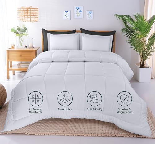 - مريح طوال العام لجميع المواسم: مصنوع من حشوة مايكروفايبر فاخرة وتصميم مبطن، يوفر طقم اللحاف مقاس كوين التوازن المثالي بين الدفء والتهوية المثالية للاستخدام على مدار العام.
