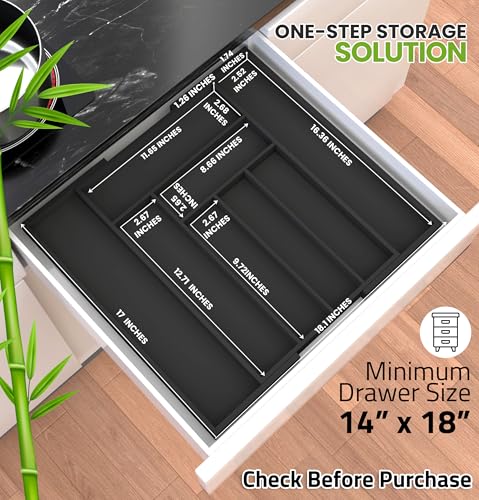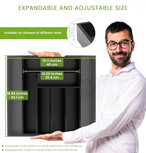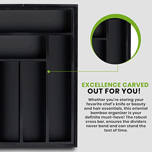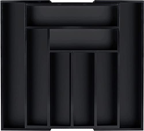 Utopia Kitchen - يوتوبيا كيتشن منظم ادوات المائدة الفضية من الخيزران قابل للتوسيع لادراج المطبخ درج حامل صينية تنظيم - اسود