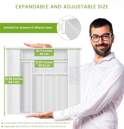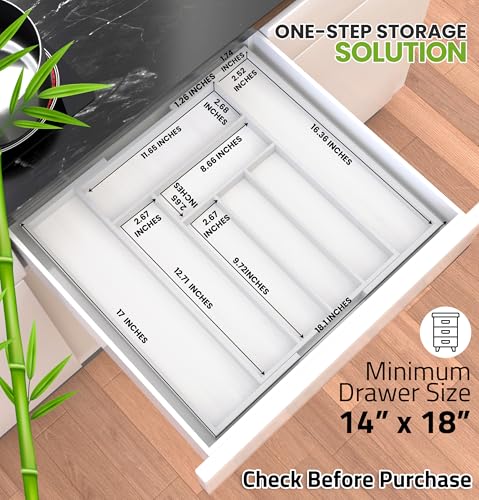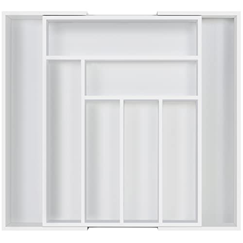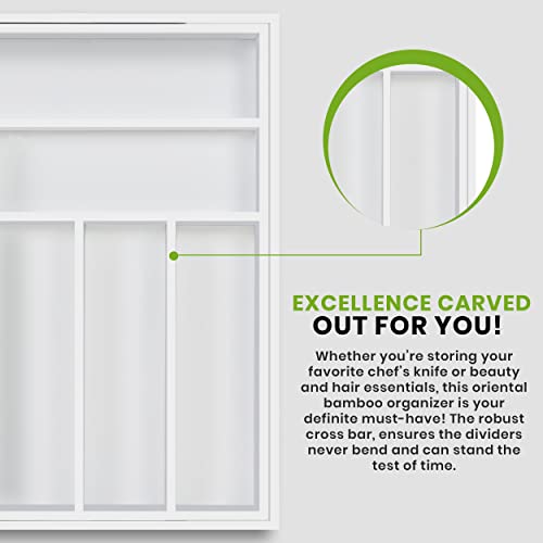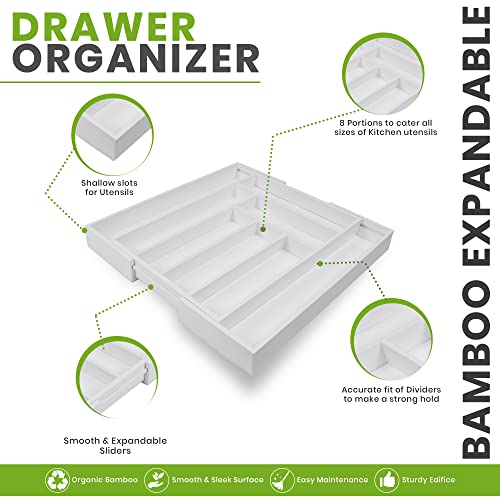 Utopia Kitchen - يوتوبيا كيتشن منظم ادراج قابل للتوسيع المطبخ للتعديل فواصل من الخيزران للمطبخ والاواني الفضية وادوات المائدة وغرفة المعيشة ابيض