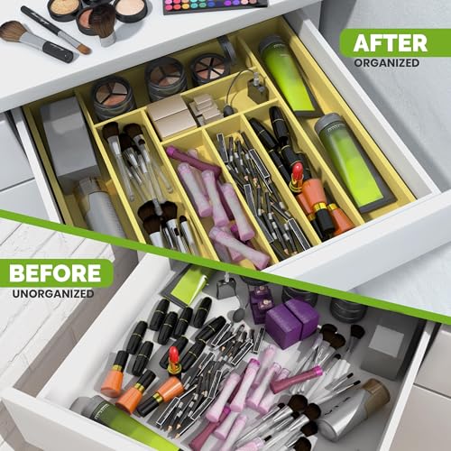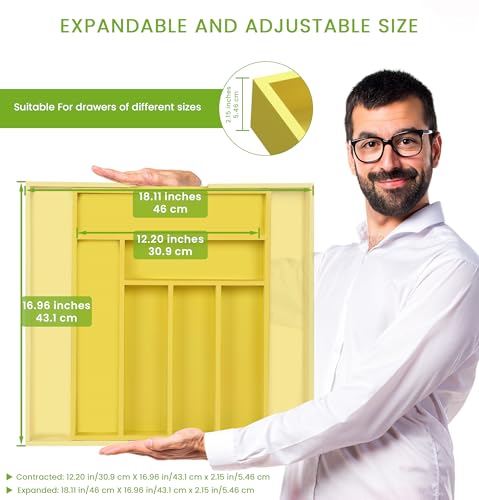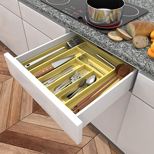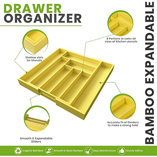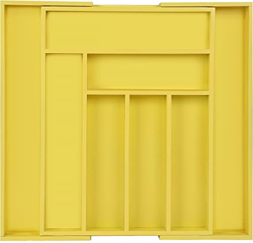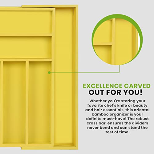 Utopia Kitchen - منظم أدراج قابل للتوسيع والتعديل، منظم فواصل أدراج من الخيزران للمطبخ والأواني الفضية وأدوات المائدة وغرفة المعيشة من يوتوبيا كيتشن - (لون أصفر)