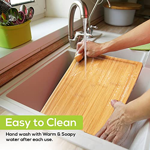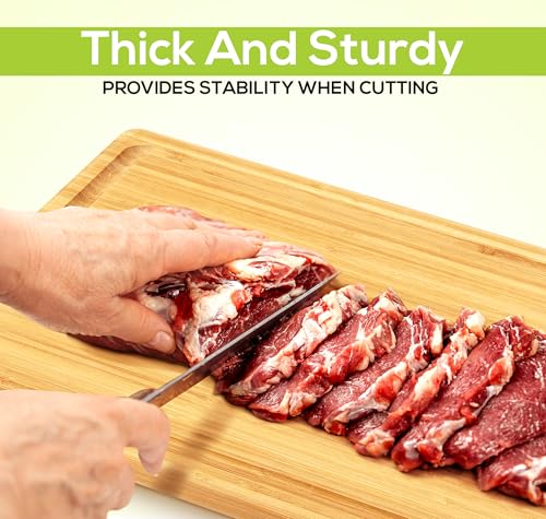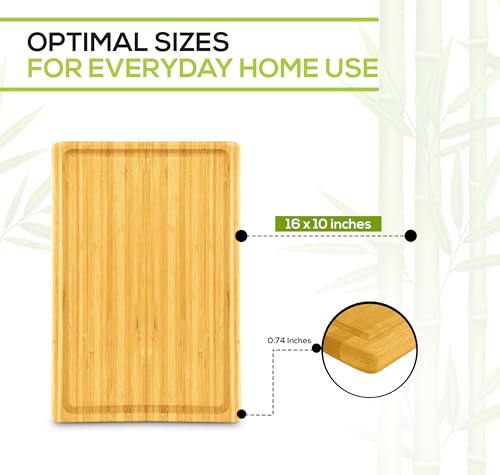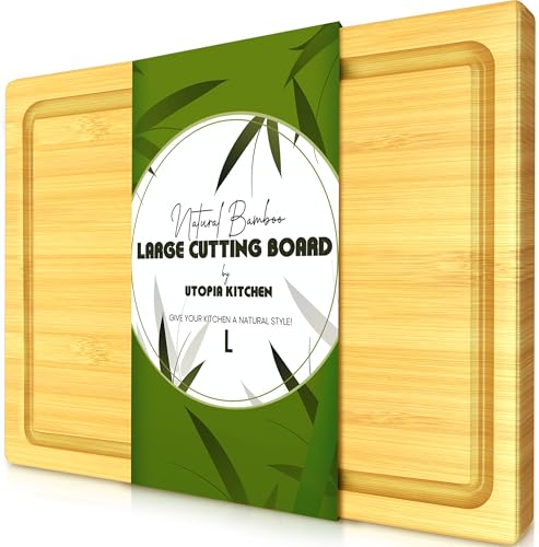 Utopia Kitchen - لوح تقطيع كبير جدًا من الخيزران بأخدود لتجميع السوائل للاستخدام في المطبخ، لوح تقطيع خشب لسطح الطاولة، لوح تقطيع سميك ومتين للحوم والخضروات والفواكه من يوتوبيا، قطعة واحدة، 40×25 سم، لون بيج Natural