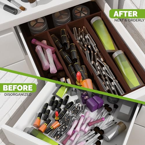 - المقاس (14 × 10 انش) - منظم مكون من 5 مساحات تخزين، مما يوفر مساحة واسعة لأدوات المطبخ وأدوات المائدة والضروريات. مثالية لتحسين تخزين خزانة المطبخ. تعتبر حشوة الدرج هذه مثالية لأولئك الذين يتطلعون إلى تحسين منظمات خزانة المطبخ وحلول التخزين، حيث تستوعب هذا الحجم القياسي وتساعد على الحفاظ على مطبخ منظم.
