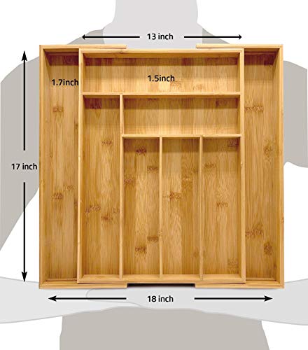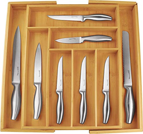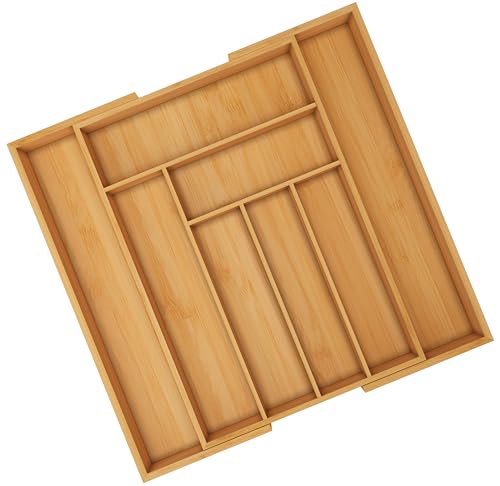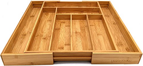 Utopia Kitchen - يوتوبيا كيتشن منظم ادوات المائدة الفضية ادراج من الخيزران قابل للتمدد درج المطبخ لادوات والاواني 6-8 فتحات طبيعي عبوة 5 قطع