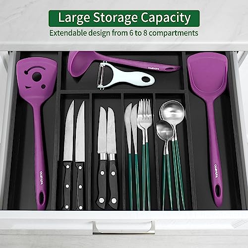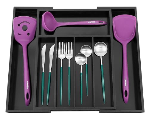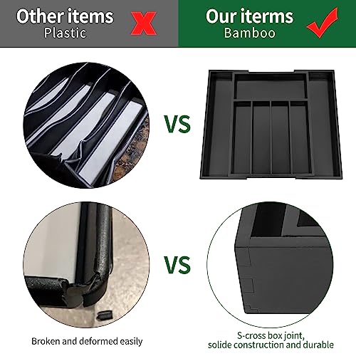 Utoplike - يو توب لايك صينية ادوات مائدة فضية من الخيزران منظم ادراج المائدة فواصل لاواني المطبخ درج لوازم المكتب اسود