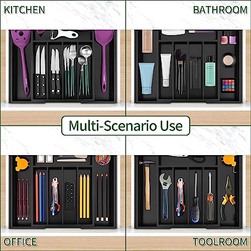 - منظم تخزين عالمي: تم تصميم منظم أدراج أدوات المائدة الخاص بنا ليكون قابل للتوسيع ويناسب معظم أدراج المطبخ. سعة تخزين كبيرة مع 5-7 مساحات تخزين مما يوفر مساحة أكبر لتخزين أدوات المائدة وأدوات المطبخ والفضيات وأدوات المائدة