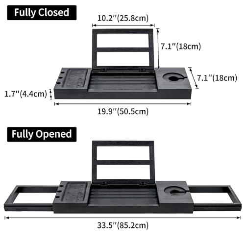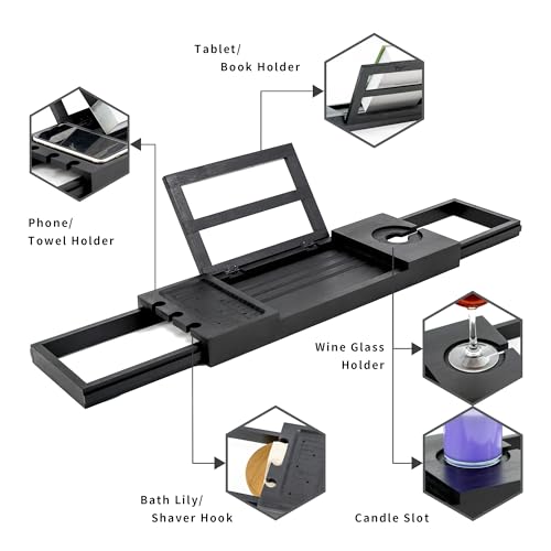 Utoplike - صواني حوض استحمام سوداء، صواني استحمام من البامبو لحوض الاستحمام، صينية قابلة للتمدد، رف طاولة لحوض استحمام بأذرع قابلة للتعديل، صواني حمام لكتب وأجهزة تابلت وموبايل وفوط وأطعمة من يوتوب لايك