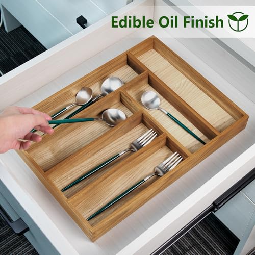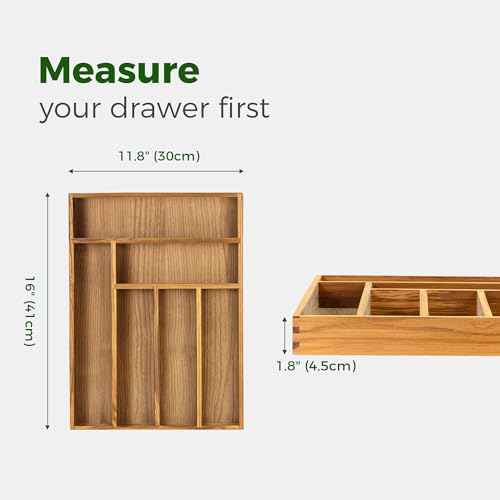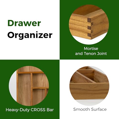 Utoplike - يو توب لايك منظم ادراج من خشب الساج للاواني الفضية ادوات المطبخ حامل صينية المائدة مقسم سكاكين 6 فتحات