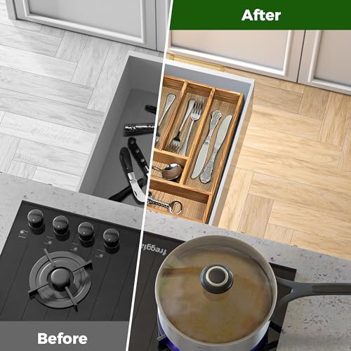 - سهل العناية: التنظيف سهل مع منظم أدراج أدوات المائدة الخاص بنا. ببساطة امسحها بقطعة قماش مبللة للحفاظ على مظهرها الأصلي وجاهزة للاستخدام