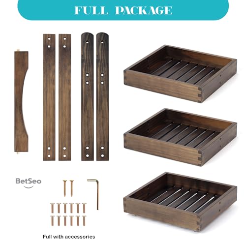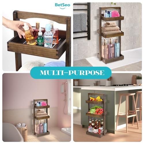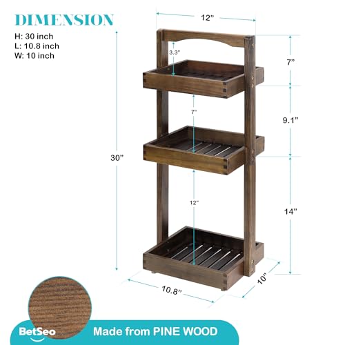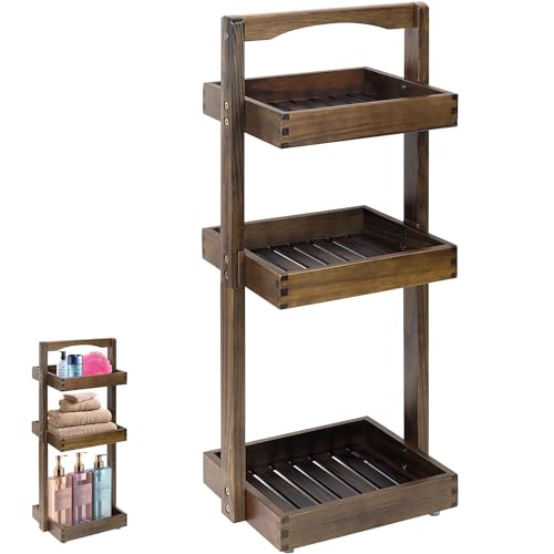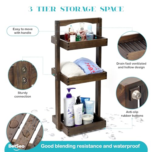 BETSEO - رف حامل دش خشبي من يوتوبليك منظم قائم 3 طبقات لزاوية الحمام رفوف خشبية قائمة بذاتها للتخزين للدش الداخلي والحمام والمكتب للمطبخ وسطح المكتب.