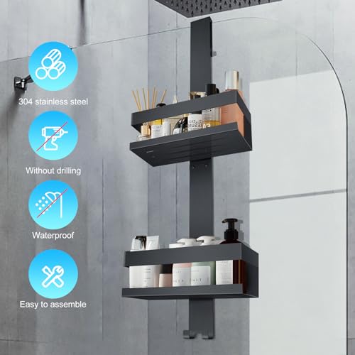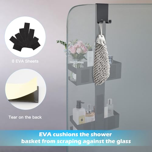 - المقاس: لتجنب الاحتكاك بين الزجاج وسلة الاستحمام، استخدم وسادات ايفا الواقية المتوفرة. يبلغ طول سلة الاستحمام المعلقة 26 انش، سلتان (23 × 10 × 8 سم) توفر مساحة كافية لجل الاستحمام والصابون والشامبو وما إلى ذلك...