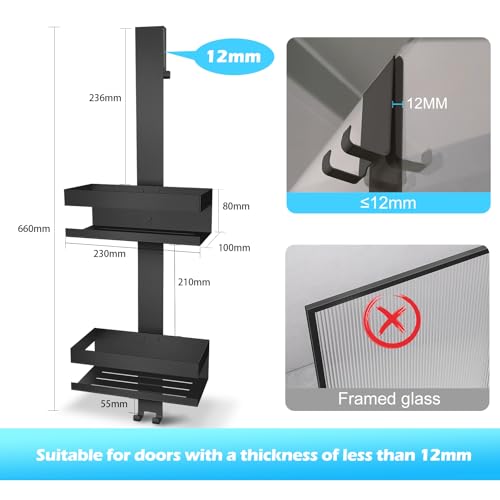 - يرجى ملاحظة: خطافات باب الدش مناسبة للأبواب الزجاجية بدون إطار التي يصل سمكها إلى 12 ملم. يرجى القياس قبل الطلب للتأكد من أن الحامل يناسب باب الحمام...