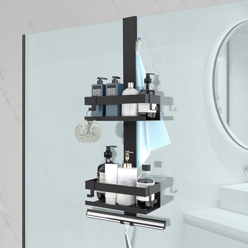 UUlioyer - رف دش معلق من الفولاذ المقاوم للصدأ SUS304 يوليوير حامل للتعليق على أبواب الدش الزجاجية أسود