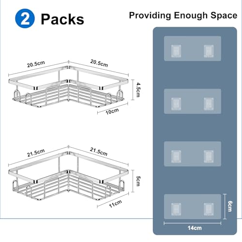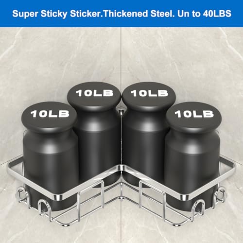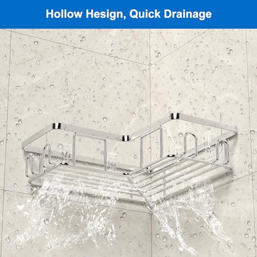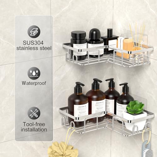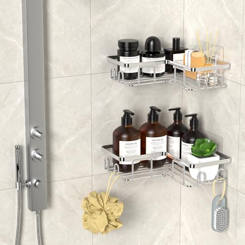 UUlioyer - رف دش SUS304 منظم من الفولاذ المقاوم للصدأ بتصميم زاوية بدون ثقوب حامل حمام للجل والشامبو من يوليوير، فضي، قطعتين