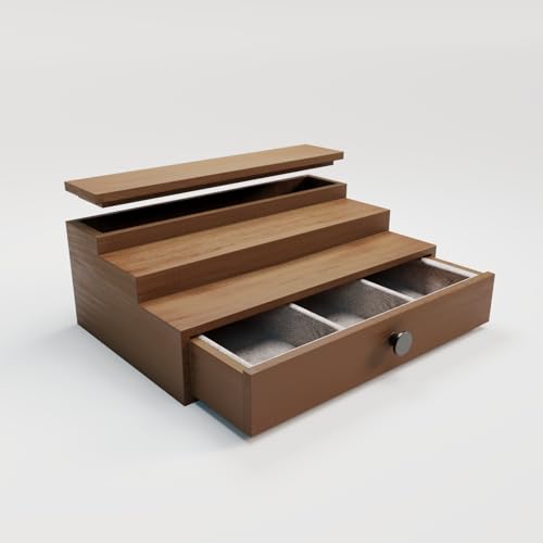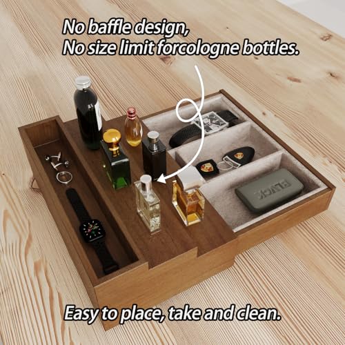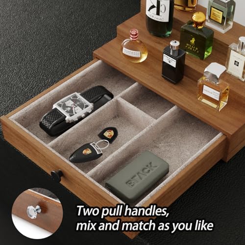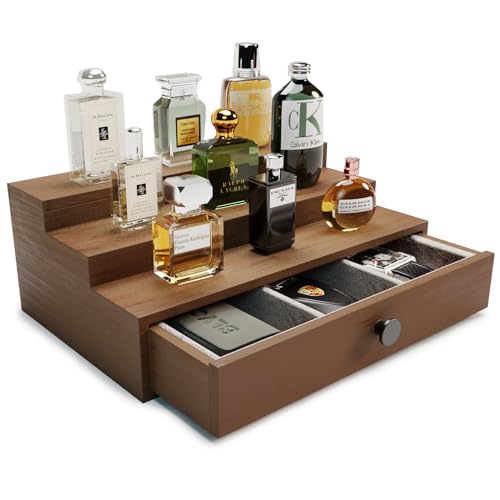 UUyuality - منظم حامل كولونيا من خشب الصنوبر مكون من 3 طبقات مع مساحة تخزين مخفية ودرج مبطن قطيفة للرجال من يويواليتي، حامل عرض العطور
