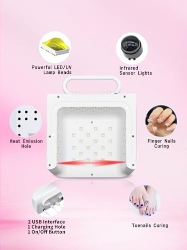 Generic - مصباح ليد بالأشعة فوق البنفسجية لتجفيف الأظافر لاسلكي بقدرة 220 وات بـ48 مصباح ليد وشاشة رقمية، لون أبيض، موديل BY-10