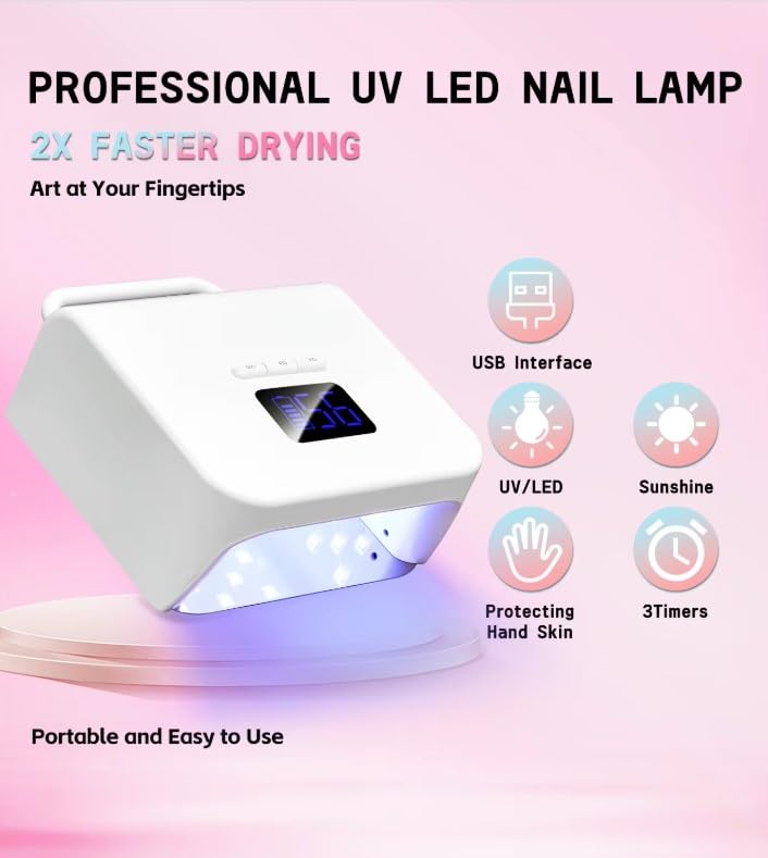 - مجفف أظافر احترافي: يتميز بقدرة 220 وات من الطاقة تضمن معالجة سريعة وفعالة، ومناسبة لجميع طلاء الأظافر الجل.