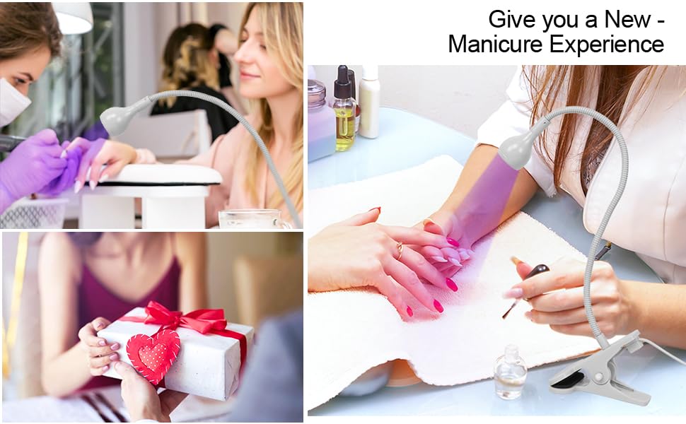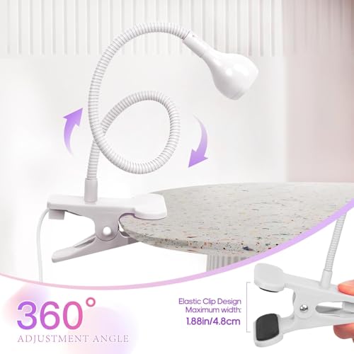 - مصباح الأشعة فوق البنفسجية مرن وصغير الحجم: مصباح الأظافر المحمول ذو الرقبة المنحنية قابل للانحناء 360 درجة بحرية، مما يتيح تعديل ارتفاعه واتجاهه بمرونة للوصول إلى الوضع المثالي. يضمن مصباح الأظافر بالأشعة فوق البنفسجية المزود بمشبك تثبيت سلاسة وثبات مجفف الأظافر LED. مصباح أظافر بالأشعة فوق البنفسجية محمول أيضًا.