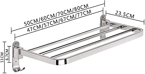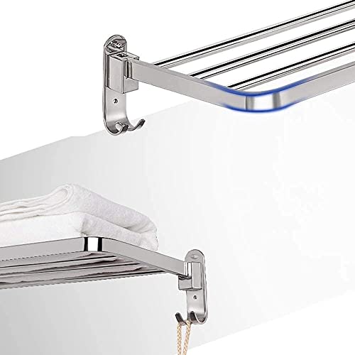 UWALLS - رفوف مناشف قابلة للطي من الستانلس ستيل 304، رف واحد للحمام والفندق يثبت على الحائط للحمام (اللون: A، المقاس: 60 سم)