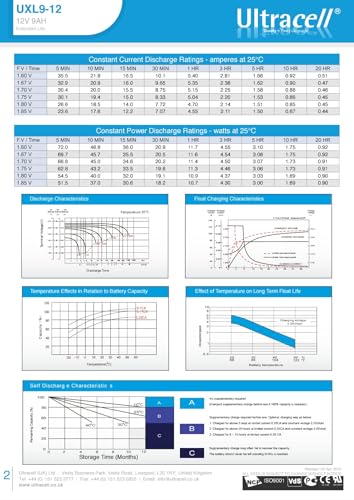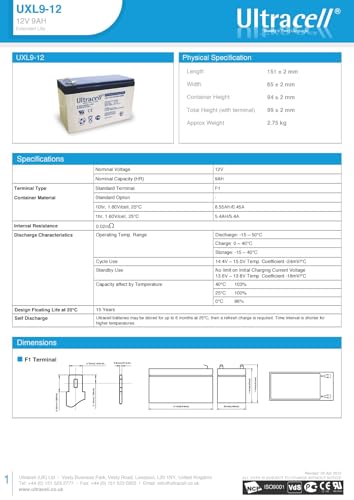 ألتراسيل - بطارية من سلسلة يو اكس ال التراسيل، 12 فولت - 9 امبير في الساعة، مصنوعة المملكة المتحدة