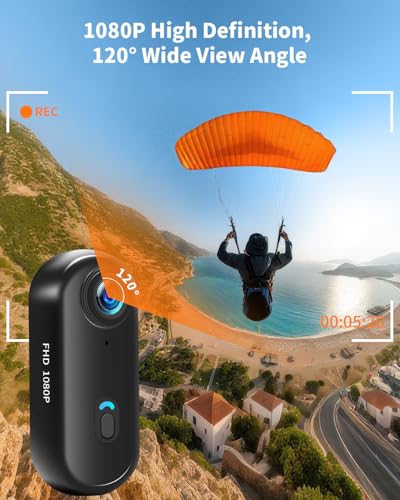 - كاميرا اكشن صغيرة HD 1080P بزاوية 120 درجة. تلتقط كاميرا الجسم المحمولة لقطات حادة وعالية الدقة بتفاصيل حية وتسجل رؤية رائعة من منظور الرؤية بزاوية عريضة 120 درجة في أي وقت وفي أي مكان