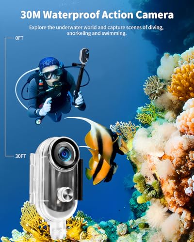 - كاميرا تحت الماء مقاومة للماء. مع غطاء قوي ومقاوم للماء بتصنيف IP68، تغوص الكاميرا تحت الماء دون عناء حتى عمق 30 متر وهي مقاومة للماء بشكل دائم. كاميرا رياضية صغيرة مثالية للرياضات المائية مثل السباحة وركوب الأمواج والغوص والغطس وما إلى ذلك