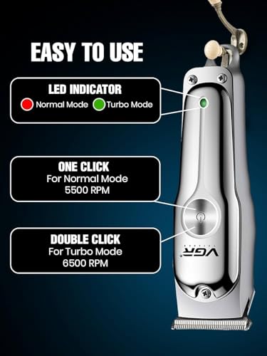 Generic - ماكينة حلاقة احترافية V-071، مدة تشغيل 120 دقيقة، شحن USB نوع سي، وضع تيربو 6500 دورة في الدقيقة، تشغيل لاسلكي/سلكي، فضي