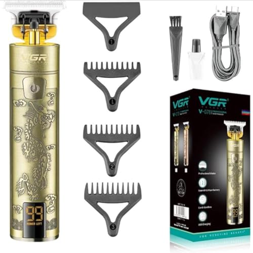 Generic - ماكينة حلاقة شعر احترافية مع شاشة رقمية قابلة لإعادة الشحن بتصميم تنين ذهبي، مزودة بـ4 أمشاط توجيه، موديل V-076
